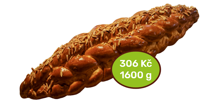 Nabízíme ručně pletené, máslové vánočky s rozinkami, sypané mandlemi a s lehkým nádechem citrónu z Pekařství Mašek jako tradiční a oblíbený vánoční dárek.