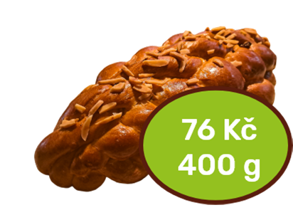 Nabízíme ručně pletené, máslové vánočky s rozinkami, sypané mandlemi a s lehkým nádechem citrónu z Pekařství Mašek jako tradiční a oblíbený vánoční dárek.